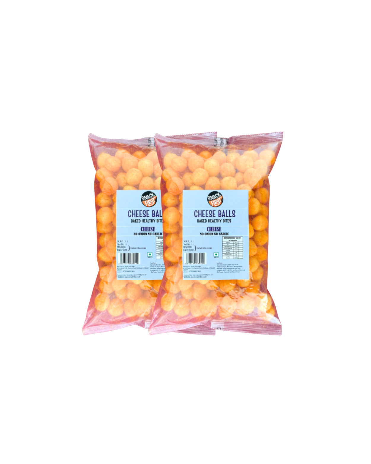 Snack First Baked CHEESE BALLS are a healthy, guilt-free snack made from corn and baked instead of fried, making them light and crunchy. Rich in fiber, cholesterol-free, zero trans fat, and vegetarian, it offers a low-calorie, crunchy treat for all age groups.