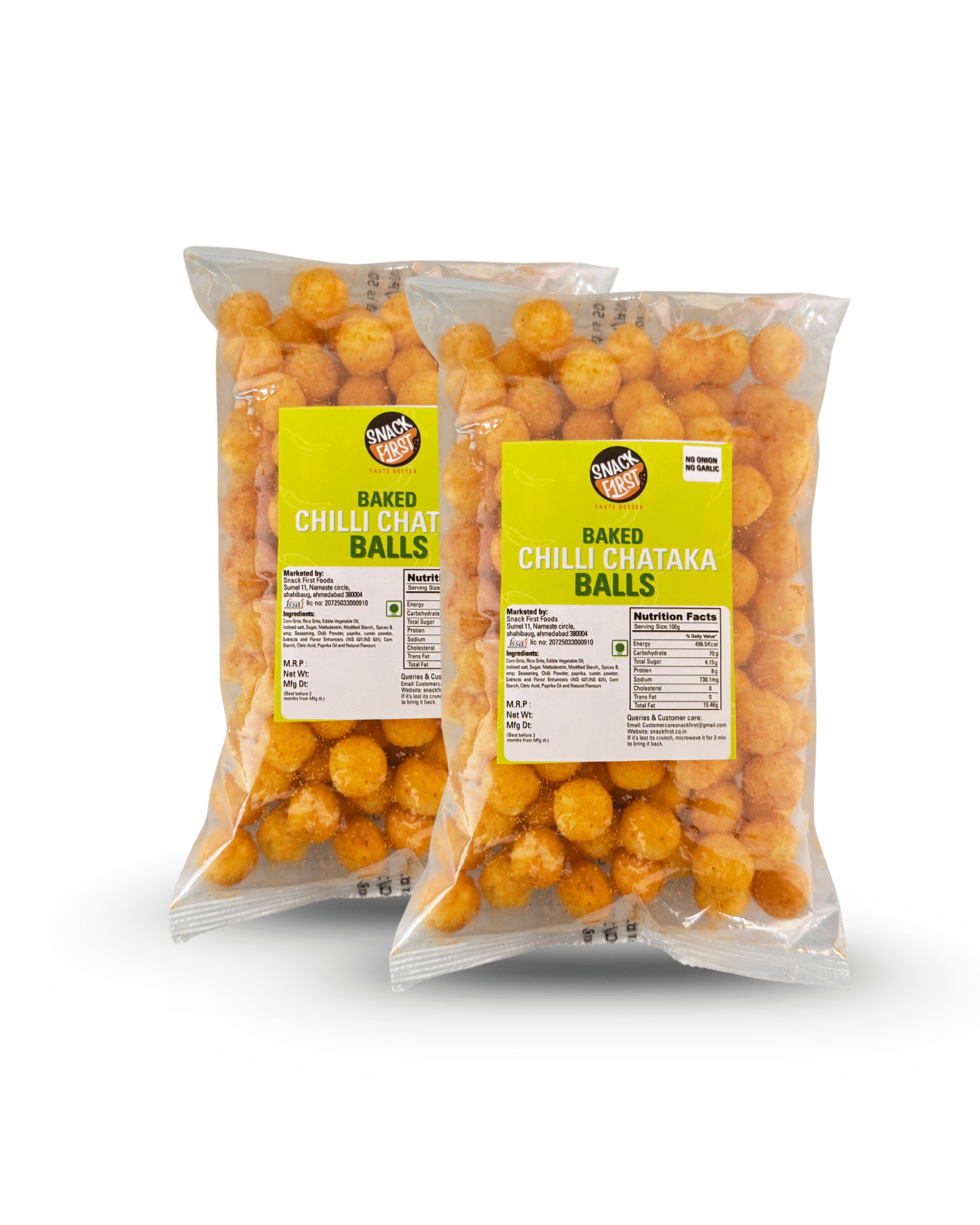 Snack First Baked CHILLI CHATAKA BALLS are a healthy, guilt-free snack made from corn and baked instead of fried, making them light and crunchy. Rich in fiber, cholesterol-free, zero trans fat, and vegetarian, it offers a low-calorie, crunchy treat for all age groups.