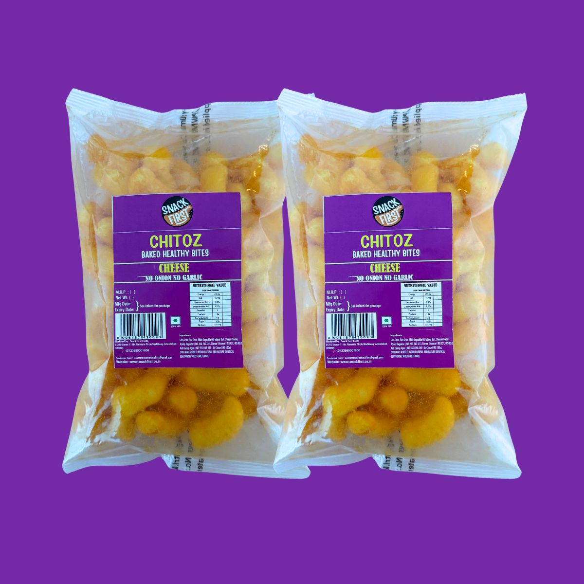 Snack First Baked Chitoz Cheese Corn Puff are healthy, guilt-free & combination of sweet-spicy snack made from corn and baked instead of fried, making them light and crunchy. Rich in fiber, cholesterol-free, zero trans fat, and vegetarian, it offers a low-calorie, crunchy treat for all age groups.