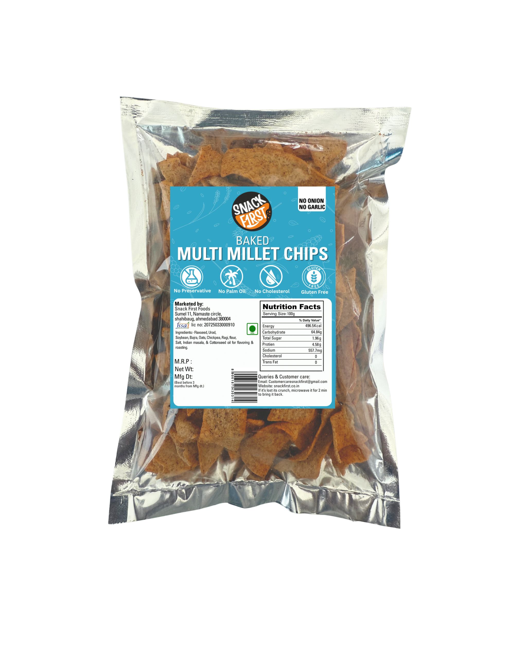 Baked Multi Millet Chips, Gluten free, no palm oil, no preservative & artificial color, good for health, healthy & guilt free snack to munch on.