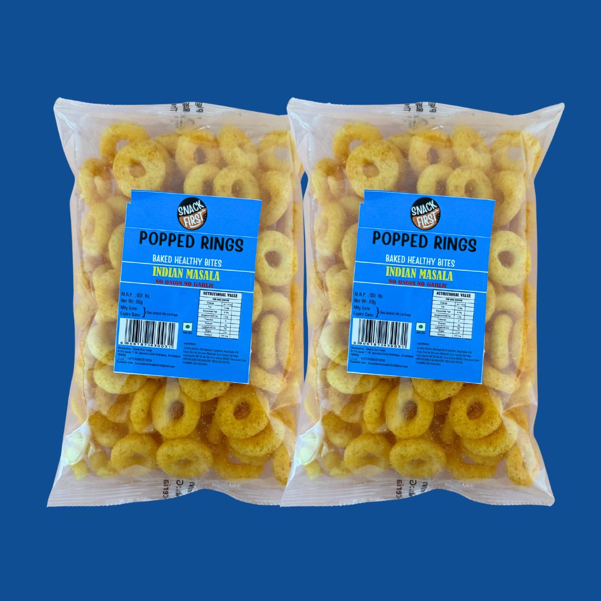 Snack First Baked Masala Popped Rings has spicy flavor and they are a healthy, guilt-free snack made from corn and