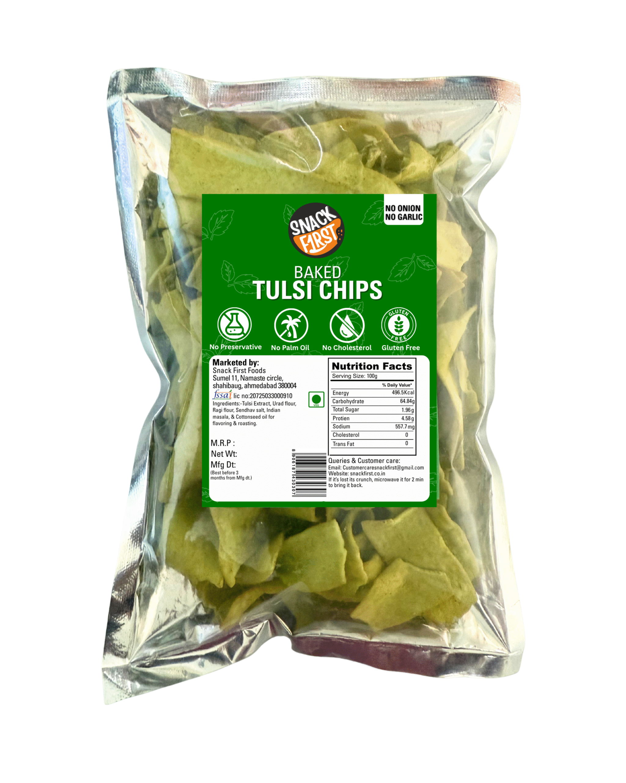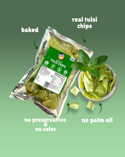 Baked Tulsi Chips, Gluten free, no palm oil, no preservative & artificial color, good for health, healthy & guilt free snack to munch on.