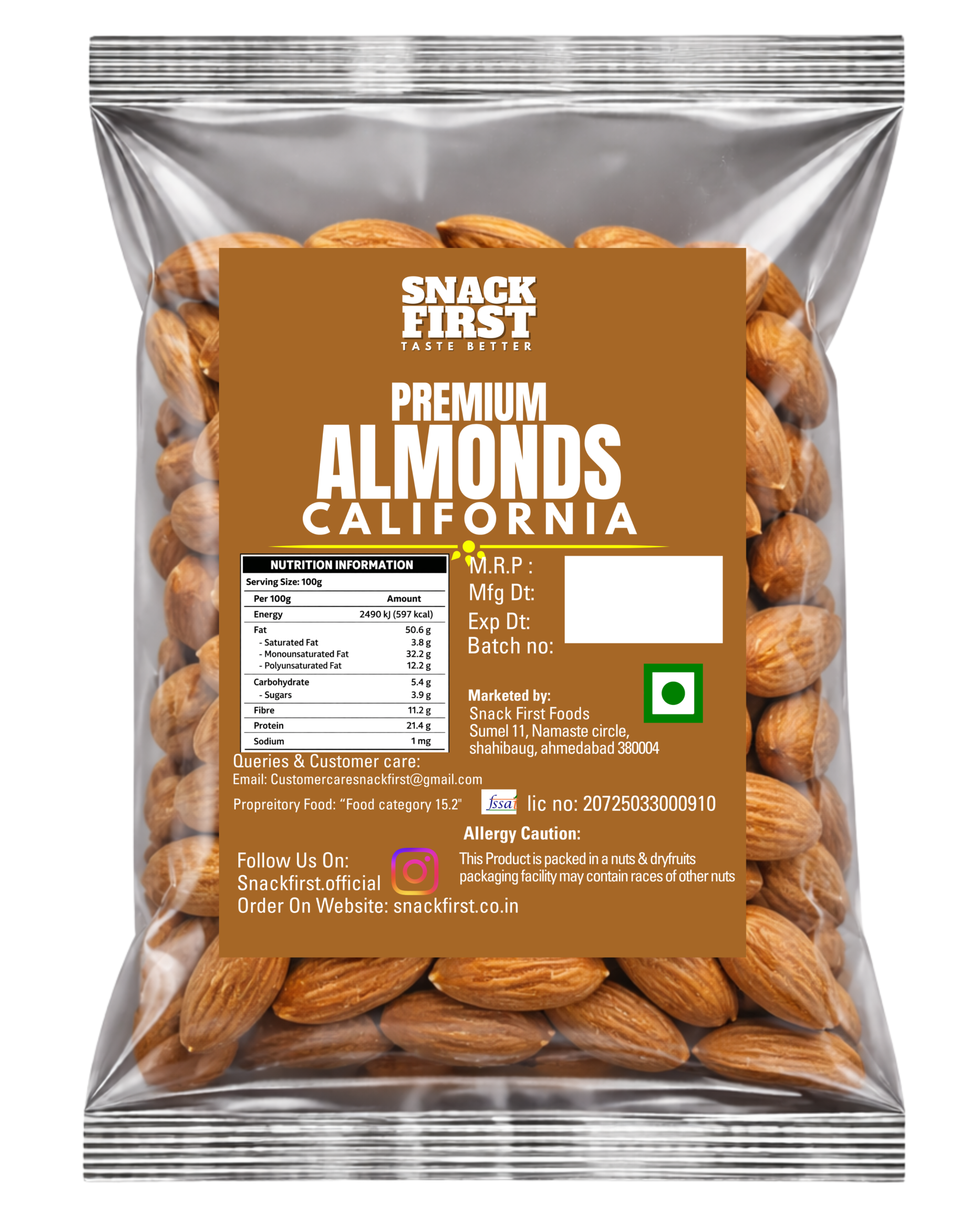 Enjoy the perfect combination of taste and health with our premium-quality almonds. Carefully selected and hygienically packed, these almonds are naturally rich in nutrients and deliver a fresh, crunchy bite every time.