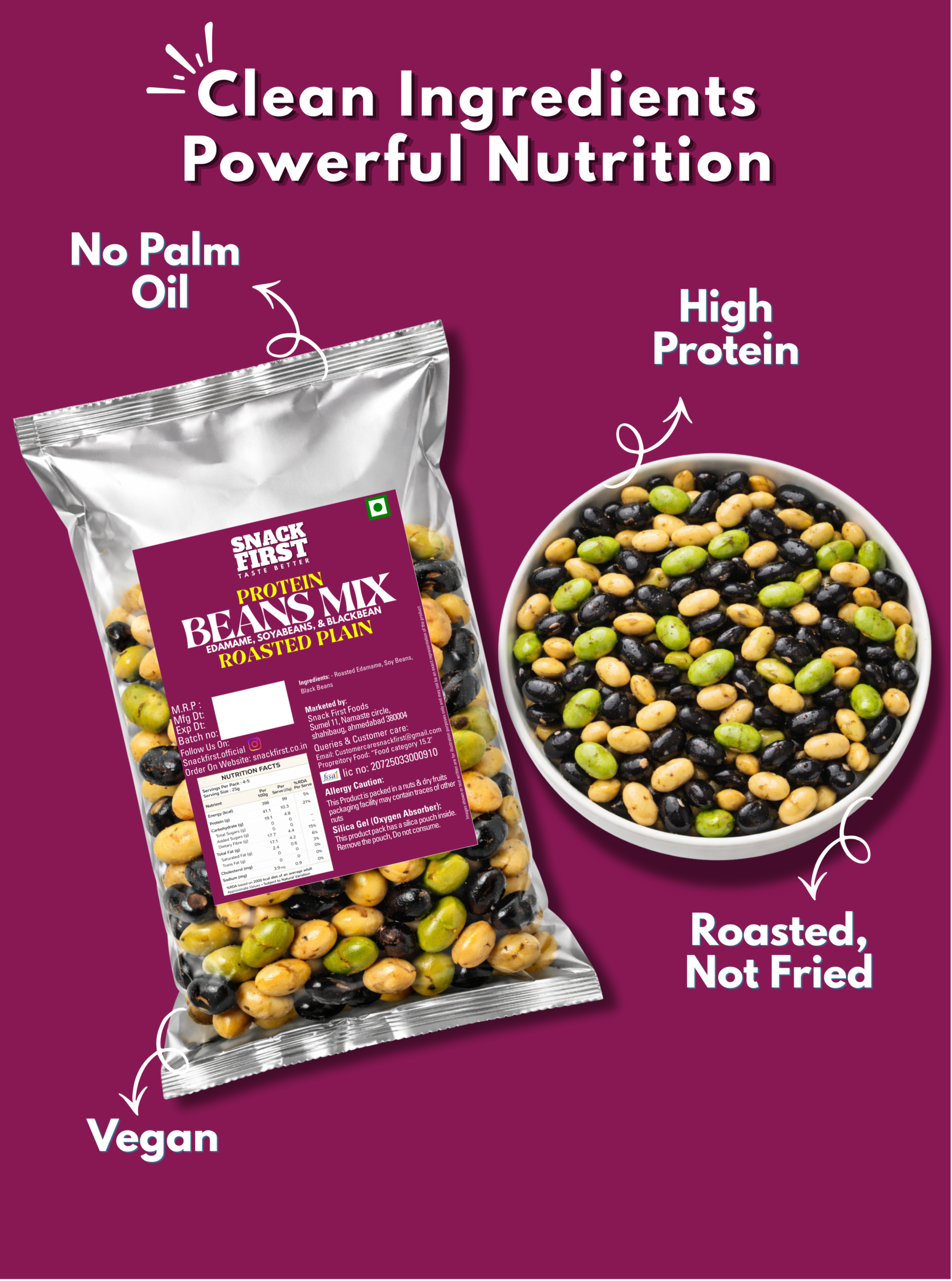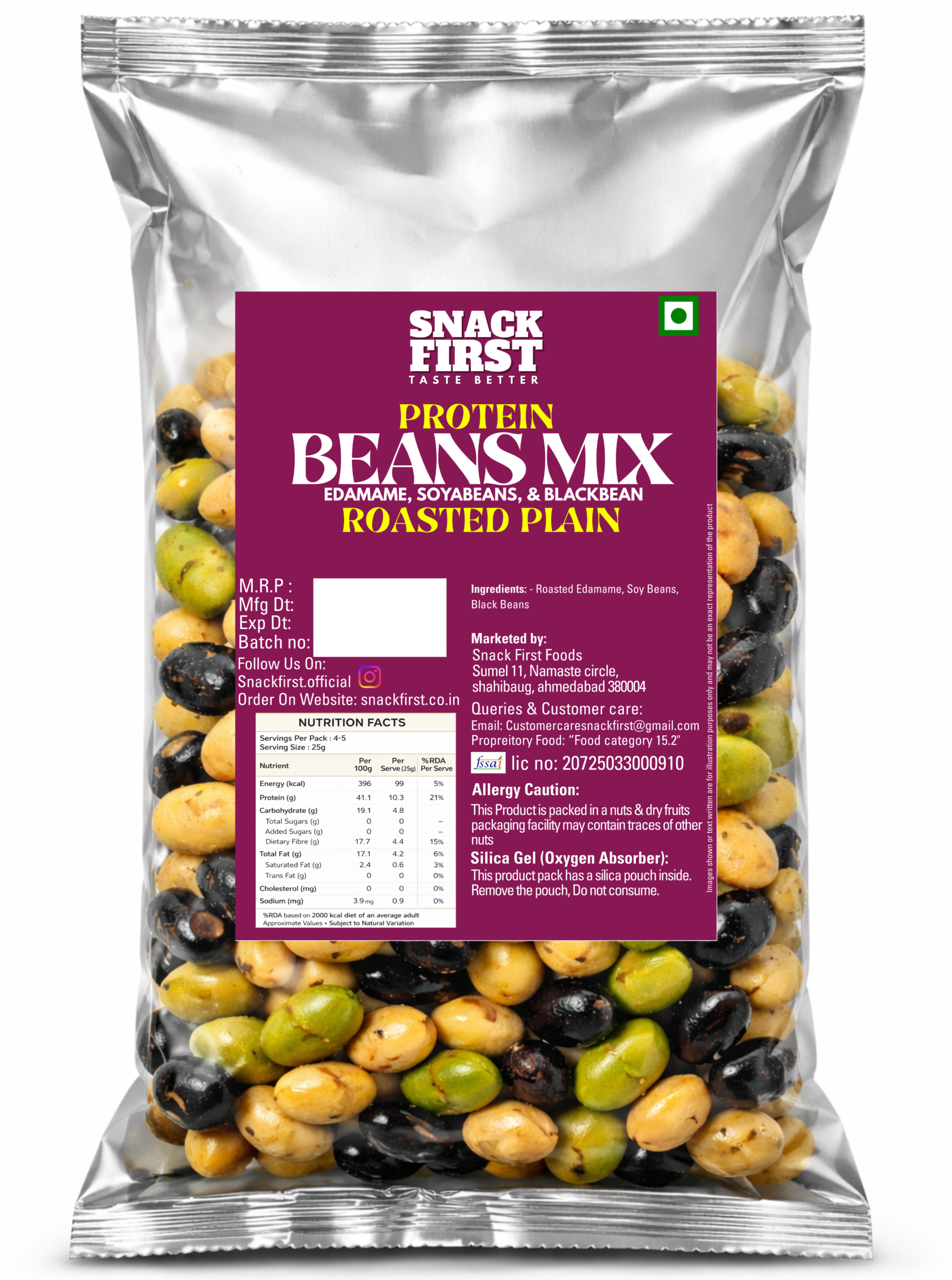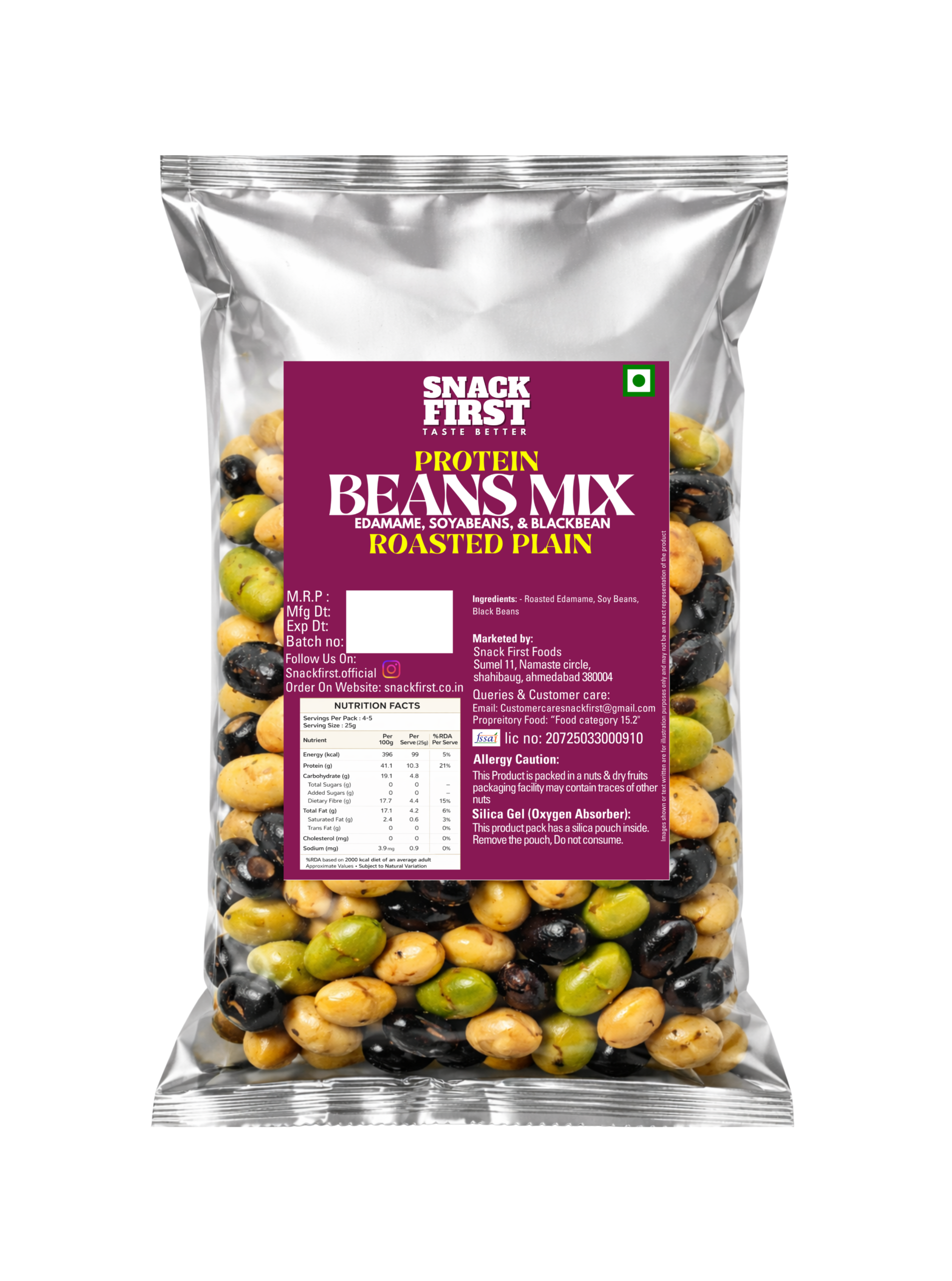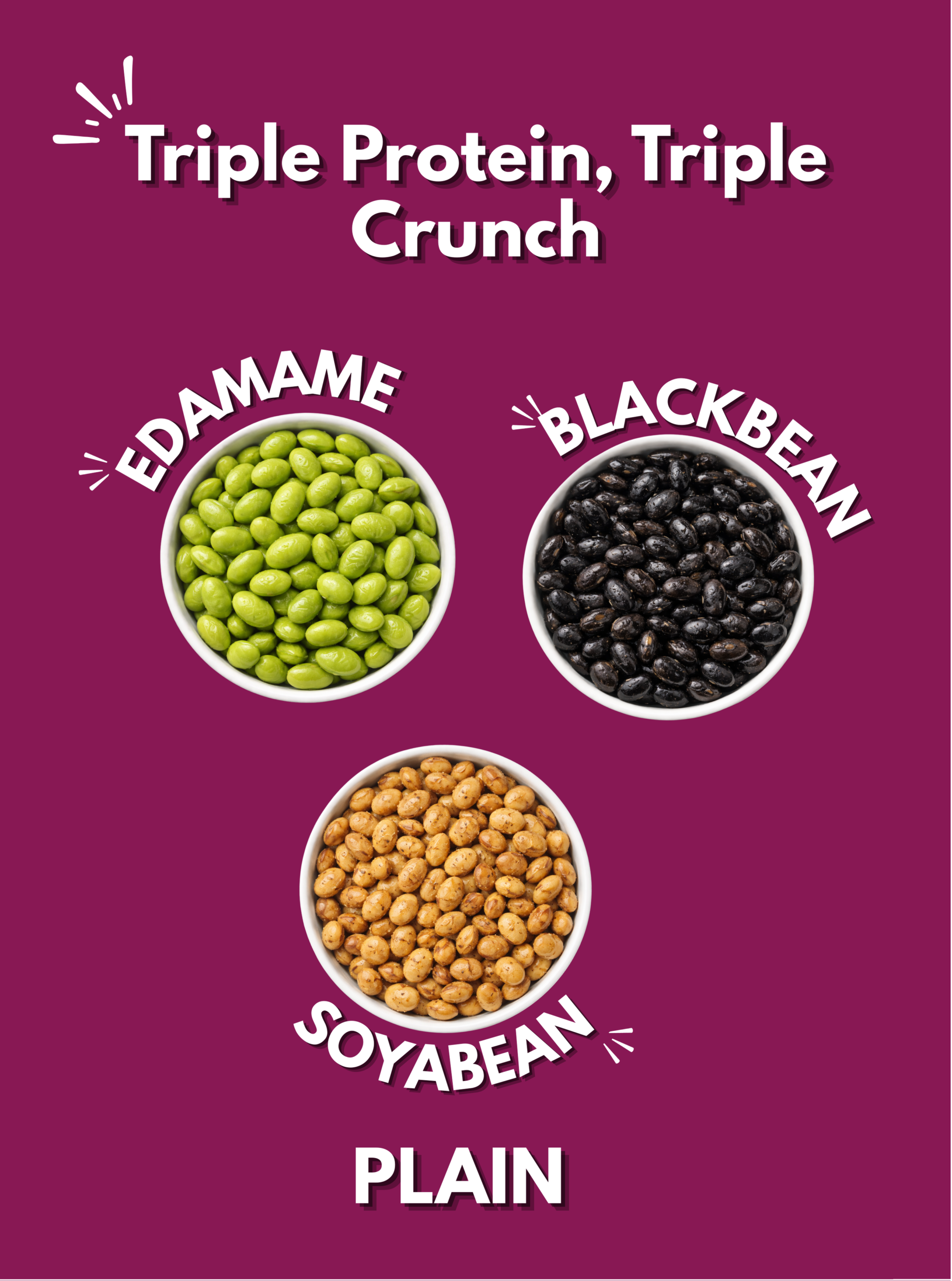 Enjoy a crunchy, wholesome snack packed with plant-based protein and bold flavor. Our roasted beans mix combines premium edamame, soybeans, and black beans, carefully roasted to perfection for a satisfying crunch in every bite.